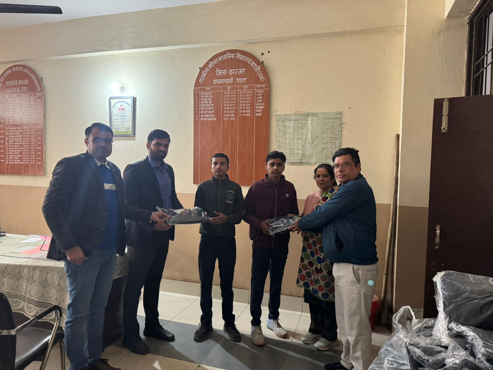 and 200 pairs of shoes to the students of Government Senior Secondary School, Village Asaudha.