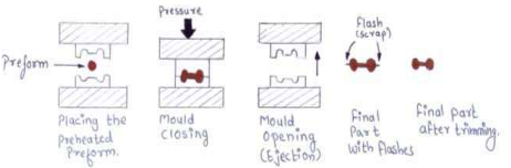 3. Moulding Machine The machine is the fundamental element of this process. A compression moulding machine is like a power press except power press have a fast operation and do not stay for more time at stroke. CM machines stay for a predetermined time when actuated. It is more like a UTM machine. According to the shape and volume of the finished product, machine tonnage is decided. We have machines from 25 ton to 500 ton.